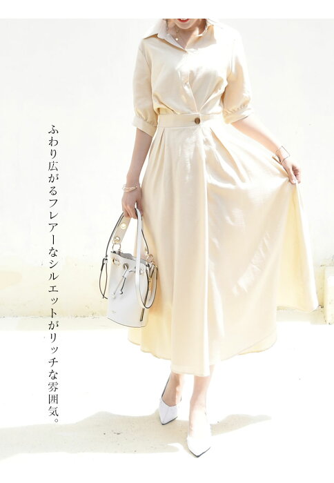 授乳服 授乳 妊娠 出産 妊婦 産後 ウエストゴム 楽ちん 美シルエット ワンピース ワンピ ドレス フォーマル お宮参り お食い初め 七五三 お祝い 結婚式 お呼ばれ ママ Milk tea ミルクティ ミルクティー着心地は楽ちんなのに、技ありディテールで抜群に華奢見えする女優みたいなフレアーワンピースです。
